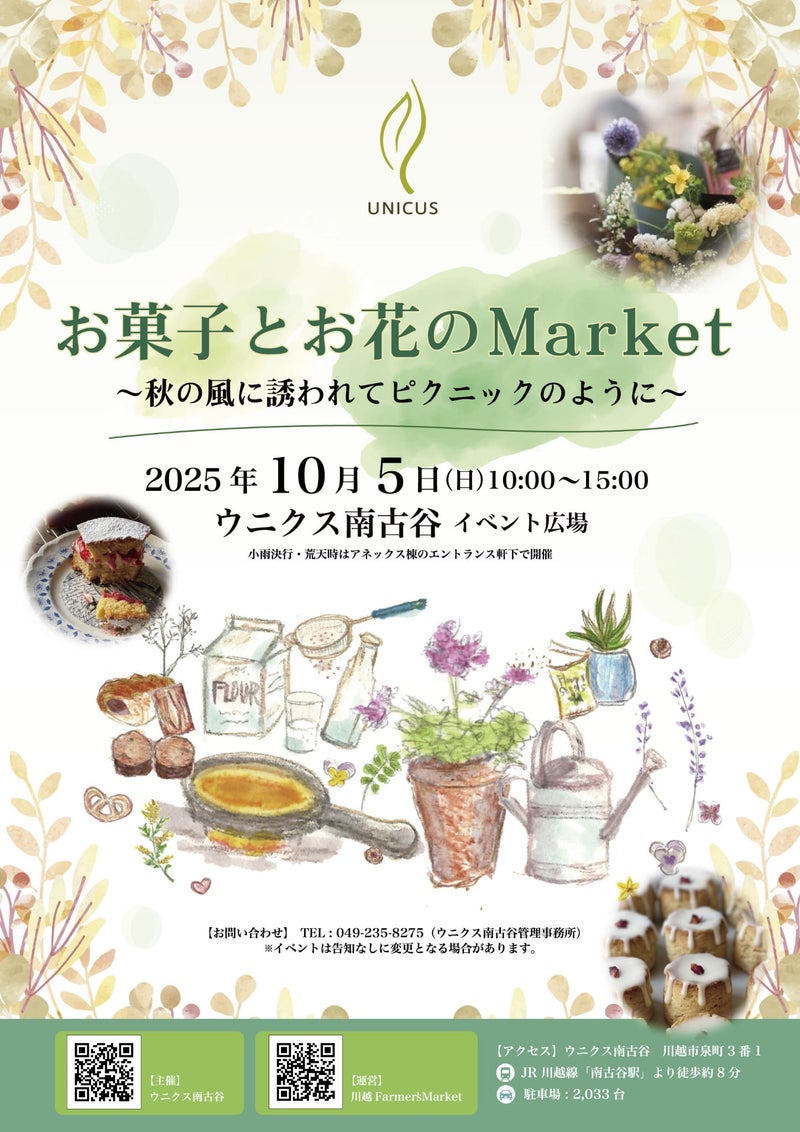 🌈ウニクス南古谷で“お花とお菓子のMaeket ~秋の風に誘われてピクニックのように~”🌸開催🎉