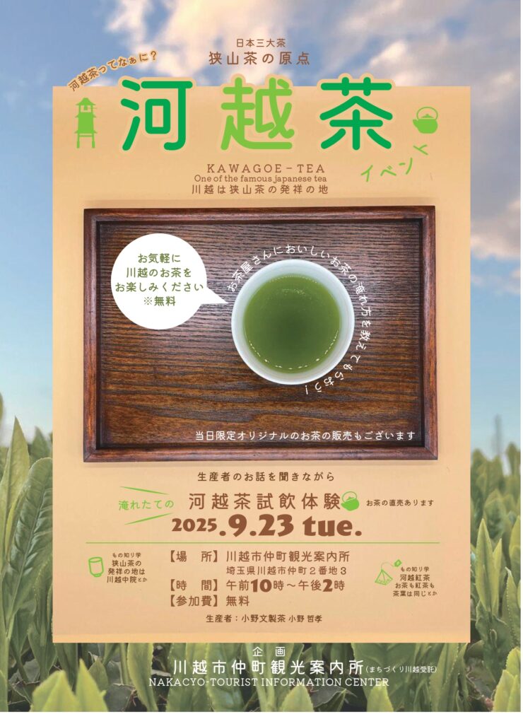 当日は小野文製茶様をお迎えし、河越茶の試飲・販売・ご説明が予定されています🍵