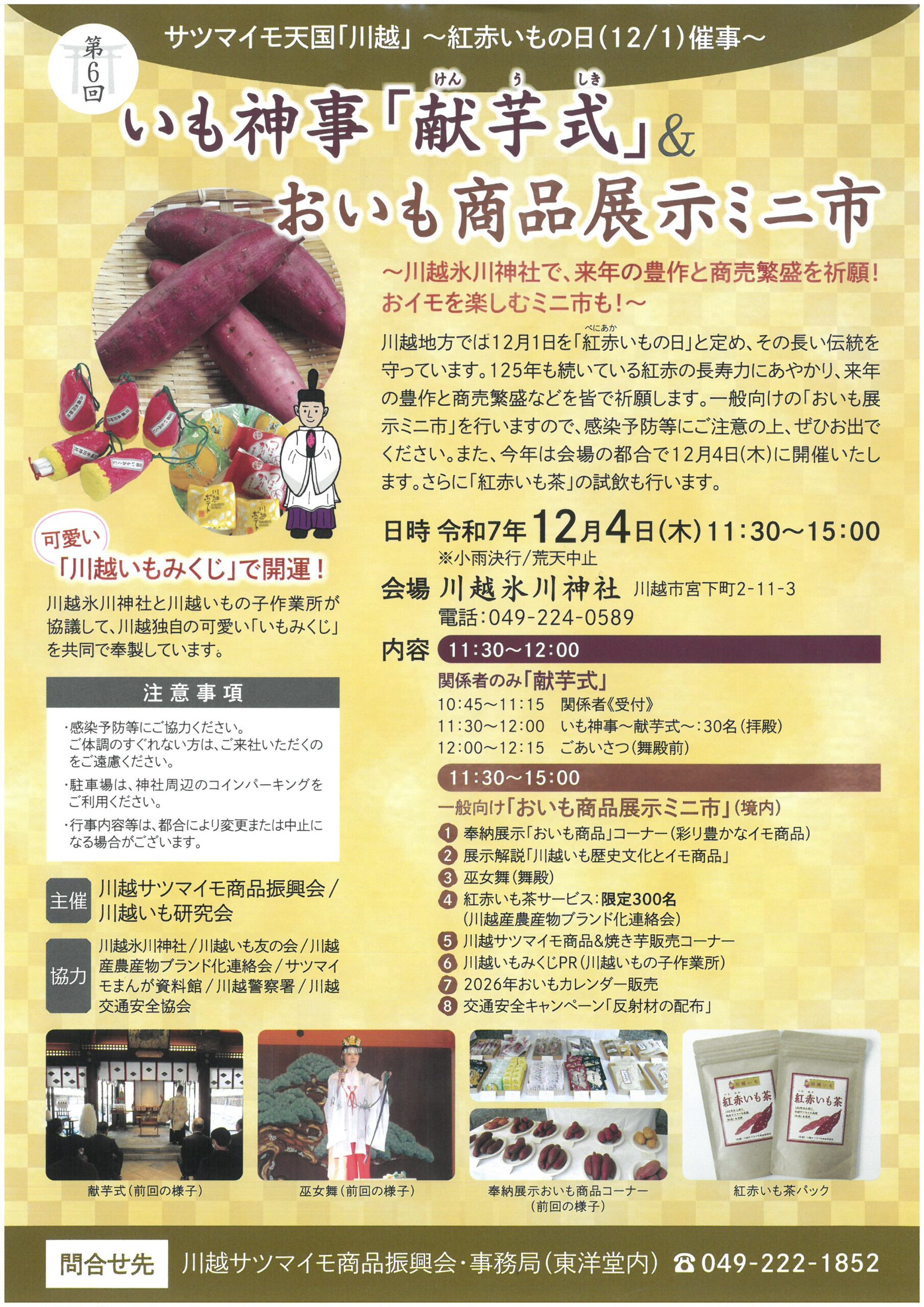🌈12/4(木)は、川越氷川神社にて第6回いも神事“献芋式(けんうしき)&おいも展示ミニ市”開催!🍠