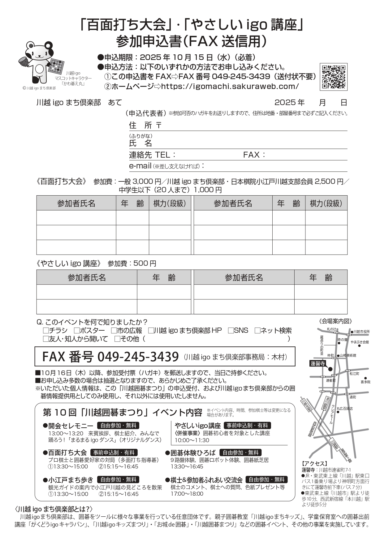 ✅百面打大会お申込みは川越igo倶楽部公式サイトから!