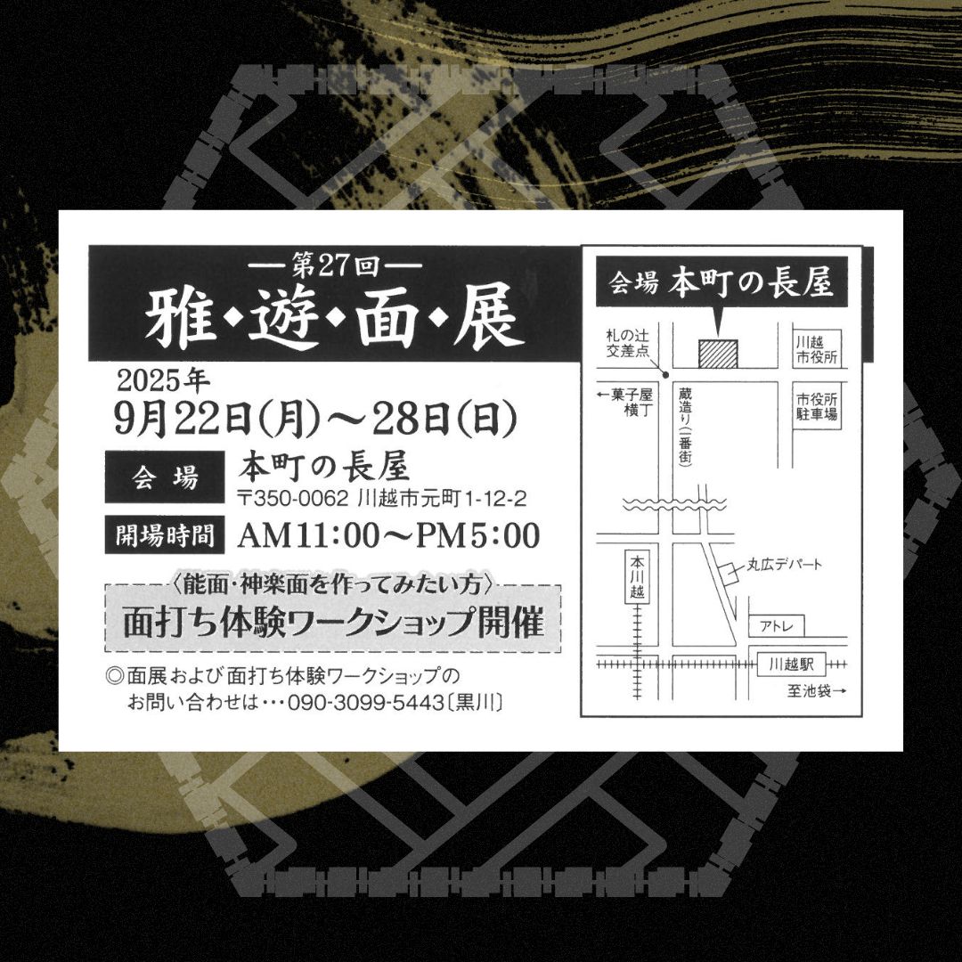 能面・神楽面の展示に加え、面打ち体験も実施される貴重な企画が川越・本町の長屋にて開催されます✨伝統芸能の美と技に触れる、秋の文化体験をぜひお楽しみください🍁
