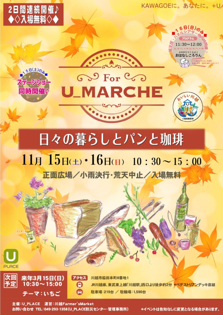 🌈川越Farmer’sMaeketが運営する🍞For U_MARCHE ~日々の暮らしとパンと珈琲~☕開催されます🎉