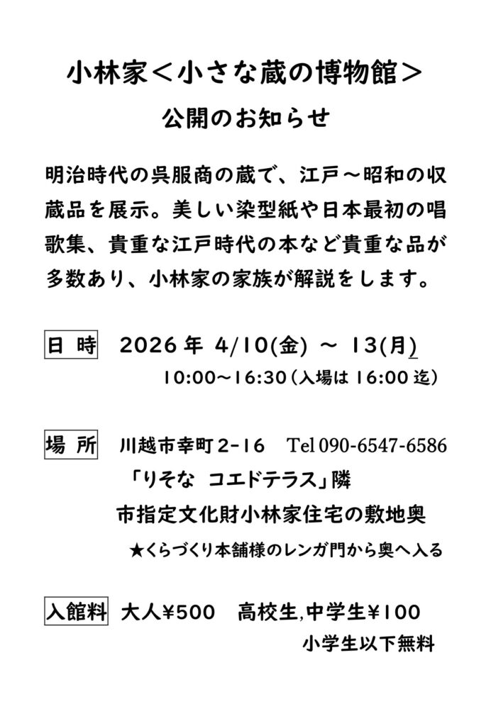 小林家 <小さな蔵の博物館> 公開日