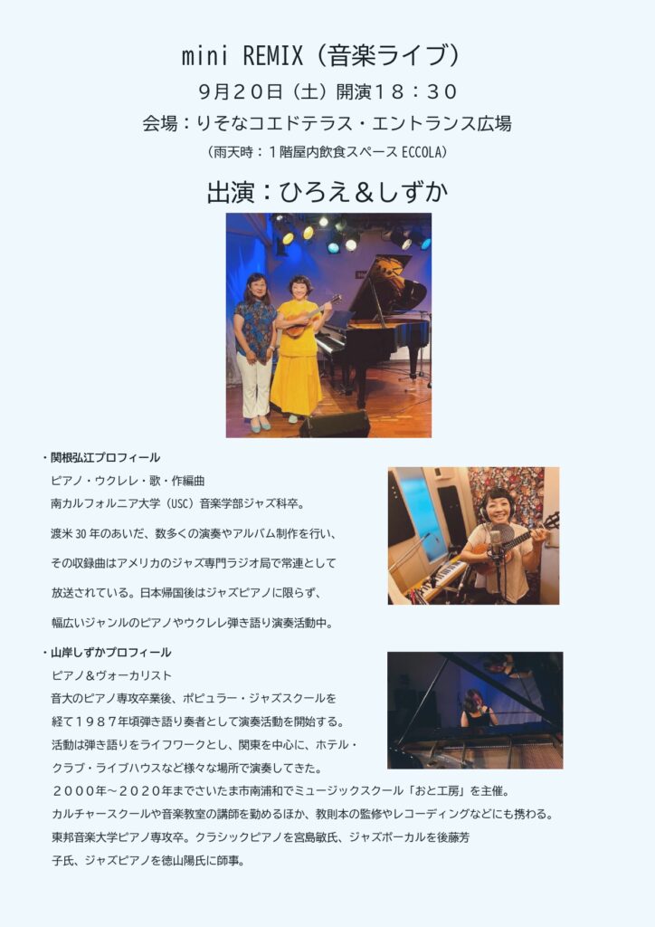 👤出演出演:ジャズと弾き語りの名手《ひろえ&しずか》。