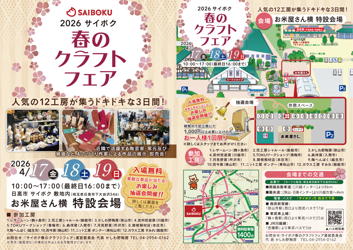 2026年4月17日(金)~19日(日)「サイボク 春のクラフトフェア」を開催いたします🎈