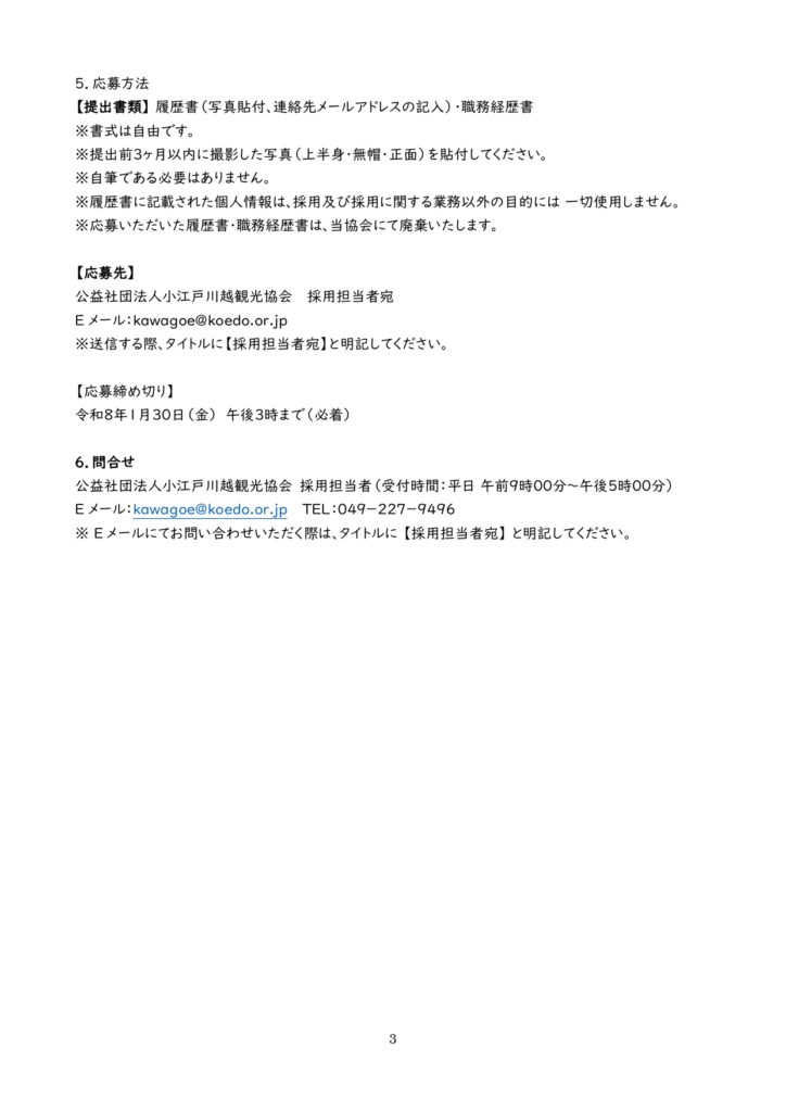 ○連絡先 公益社団法人小江戸川越観光協会 採用担当者あて