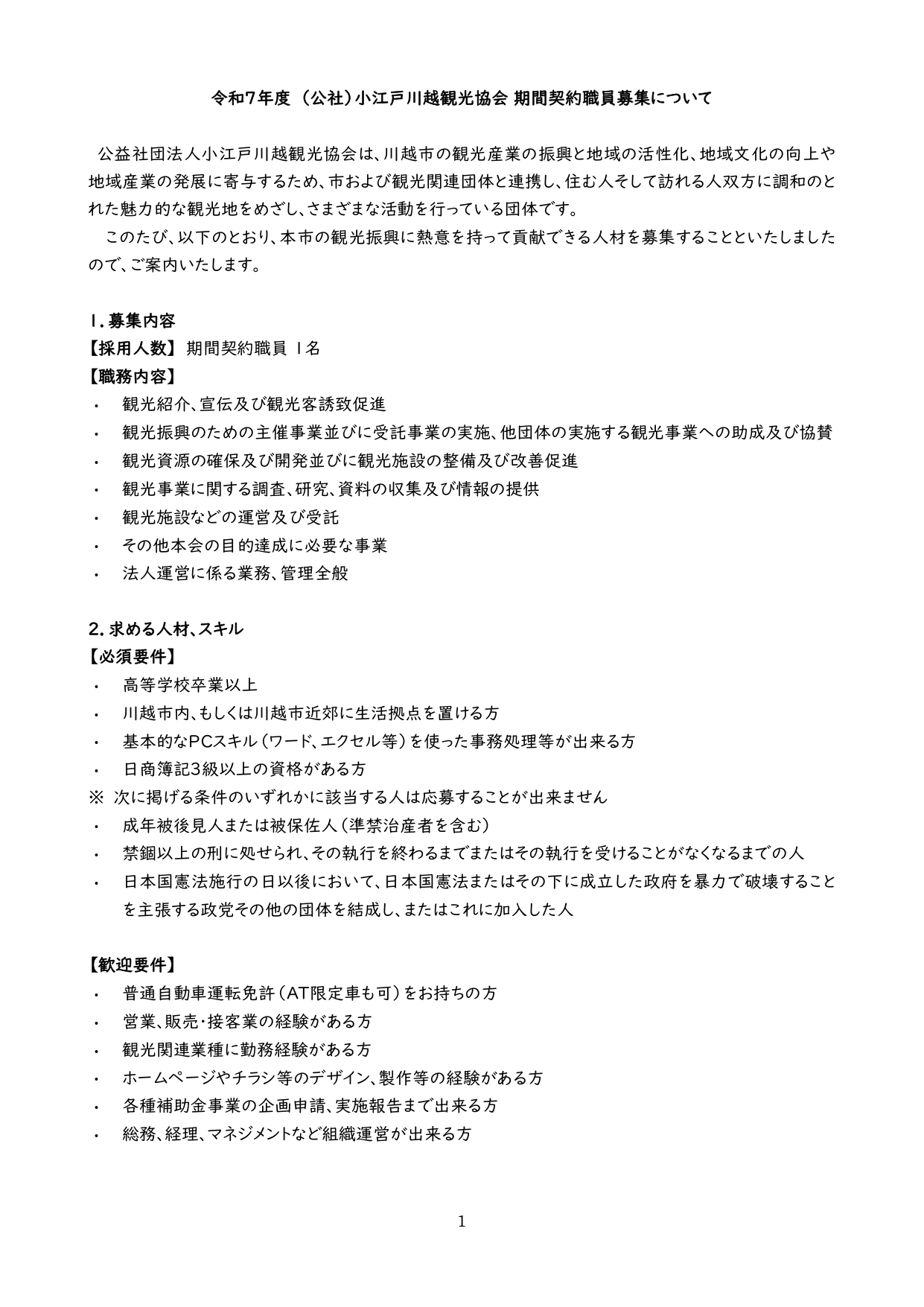 小江戸川越観光協会 期間契約職員募集のお知らせ