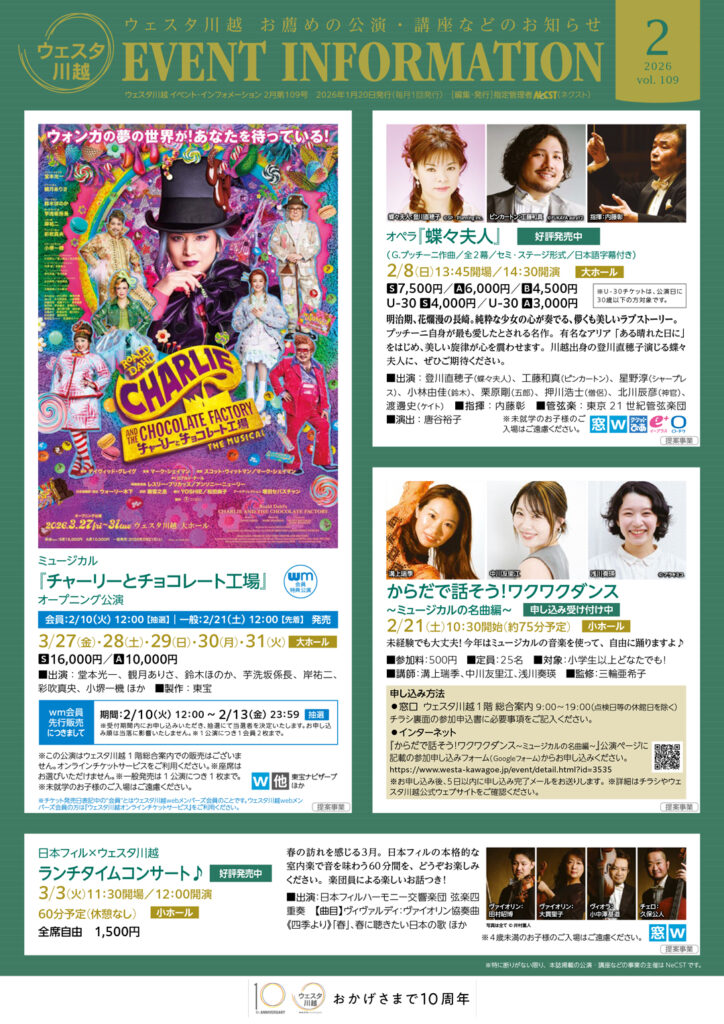 ウェスタ川越 お薦めの公演・講座などお知らせが掲載されております。