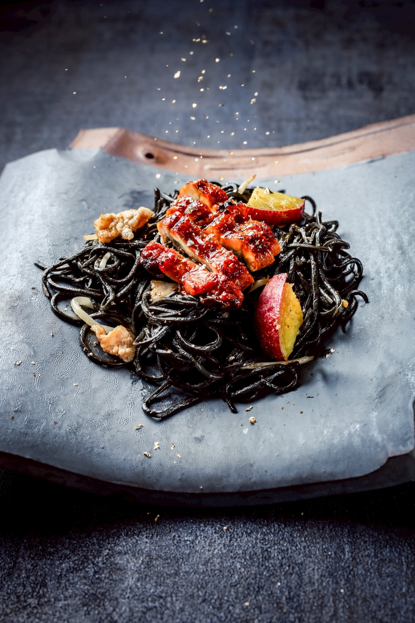 川越のご当地がふんだんにつまった漆黒開運焼きそばは一度は食べておきたい一品